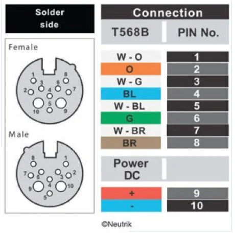 Neutrik connector part numbers: NC10FXX-14-B, NC10MXX-14-B, NC10FRX-14-B, NC10MRX-14-B